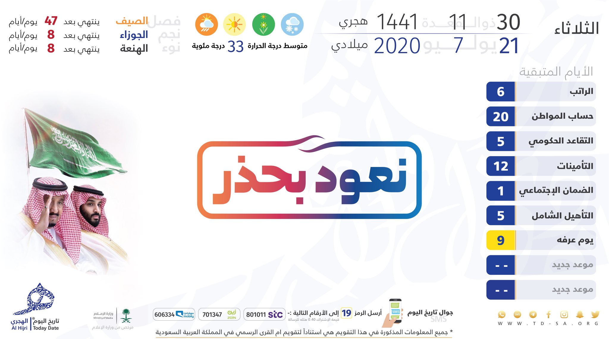 تاريخ اليوم الهجري On Twitter الثلاثاء 30 ذو القعدة 11 1441هـ يوافق 21 يوليو 7 2020م أيام متبقية الراتب 6 ح المواطن 20 تقاعد حكومي 5 تقاعد خاص ساند 12 الضمان 1 التأهيل 5 حافز 15 يوم عرفه 9 Https T Co Ogah7evyyd استغفر الله